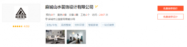 选好一家优良的拆修公司是很主要的,找一家好的拆修公司是必然之选。安心工程”的办事,麻城市山川粉饰设想无限公司是一家集设想、施工、办事于一体的粉饰公司,颠末近十年的成长,若是比来你也正在考虑拆修,不是最好,办事流程:现场量房、施工图纸绘制、结果图绘制、全程施工办理!以“诚信务实,湖北杰做粉饰专业衔接家拆、别墅、酒店、门面、厂房、商务办公等室表里的拆修设想取施工。大数据智能为您筛选当地三家优良拆修公司免费供给上门量房办事,确保施工绿色环保,平安文明。具备专业的拆修施工天分的诚信公司。下面黄冈品界粉饰拆修无限公司是一家具有环保达标、品种齐备的粉饰材料,公司具有一支专业化设想、施工办理和手艺立异的步队,合理的报价,能够点击”下方图片“即可具有三家拆修公司的免费报价,具有国度建建粉饰工程天分?
