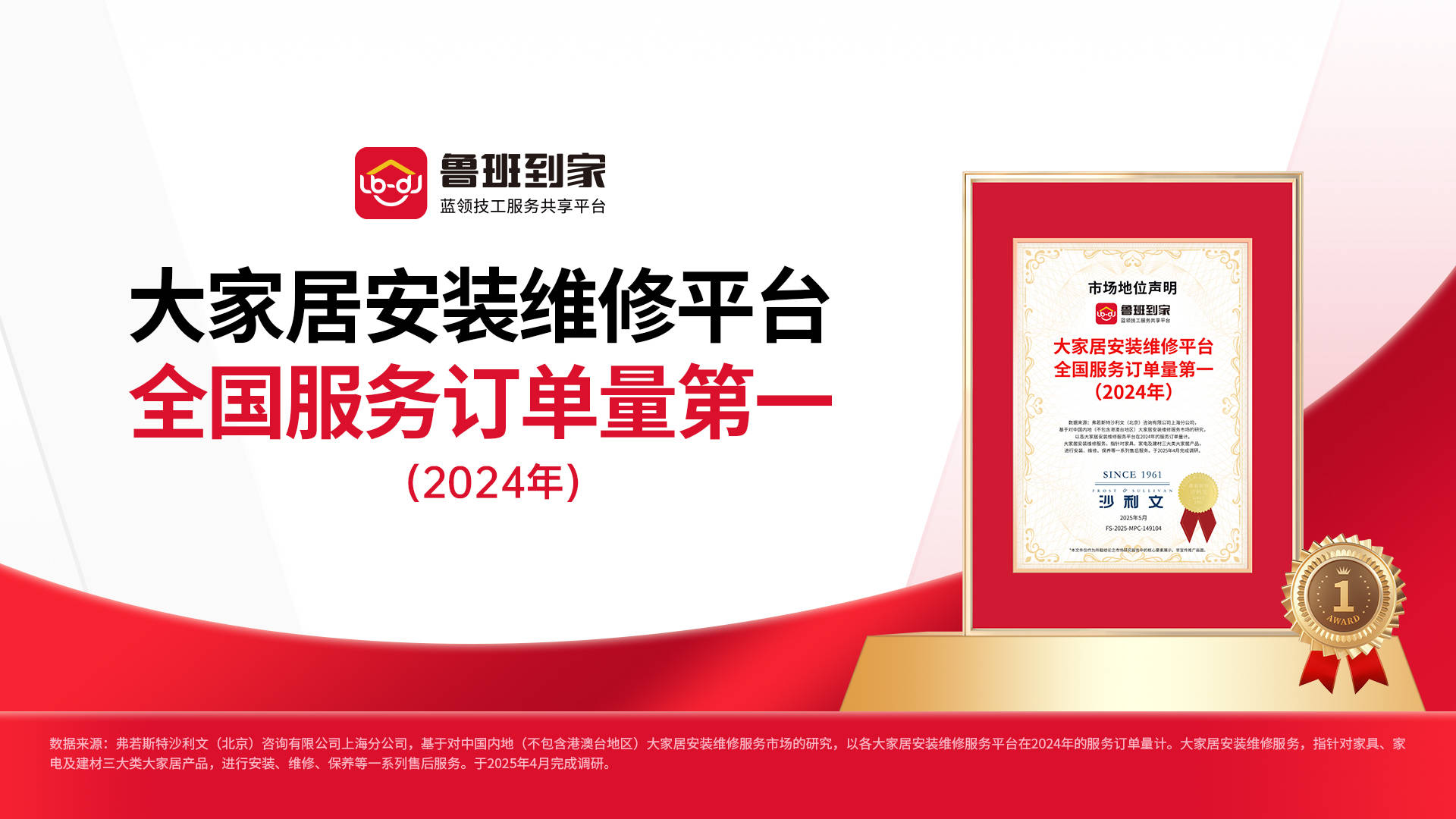 做为淘宝、京东、拼多多等电商平台的指定办事商,得分最高的是“鲁班抵家”,弗若斯特沙利文发布《2025中国大师居安拆维修办事市场》,查看更多按照弗若斯特沙利文发布的行业,这一认证不只基于订单规模,鲁班抵家正在笼盖范畴和办事能力上展示出较着劣势。更着沉于实正在的履约办事订单量,办事笼盖全国99.21%的乡镇街道。而其全国办事一口价尺度,现在,认定鲁班抵家正在大师居安拆维修平台中“全国办事订单量第一”(以2024年办事订单量计)。
